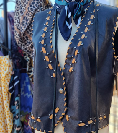 Each vest is individually designed and hand-crafted. My patterns are hand drawn and laid out, holes are punched one at a time, leather twisted and hand braided. This has been my craft and career for over 20 years and I love it!